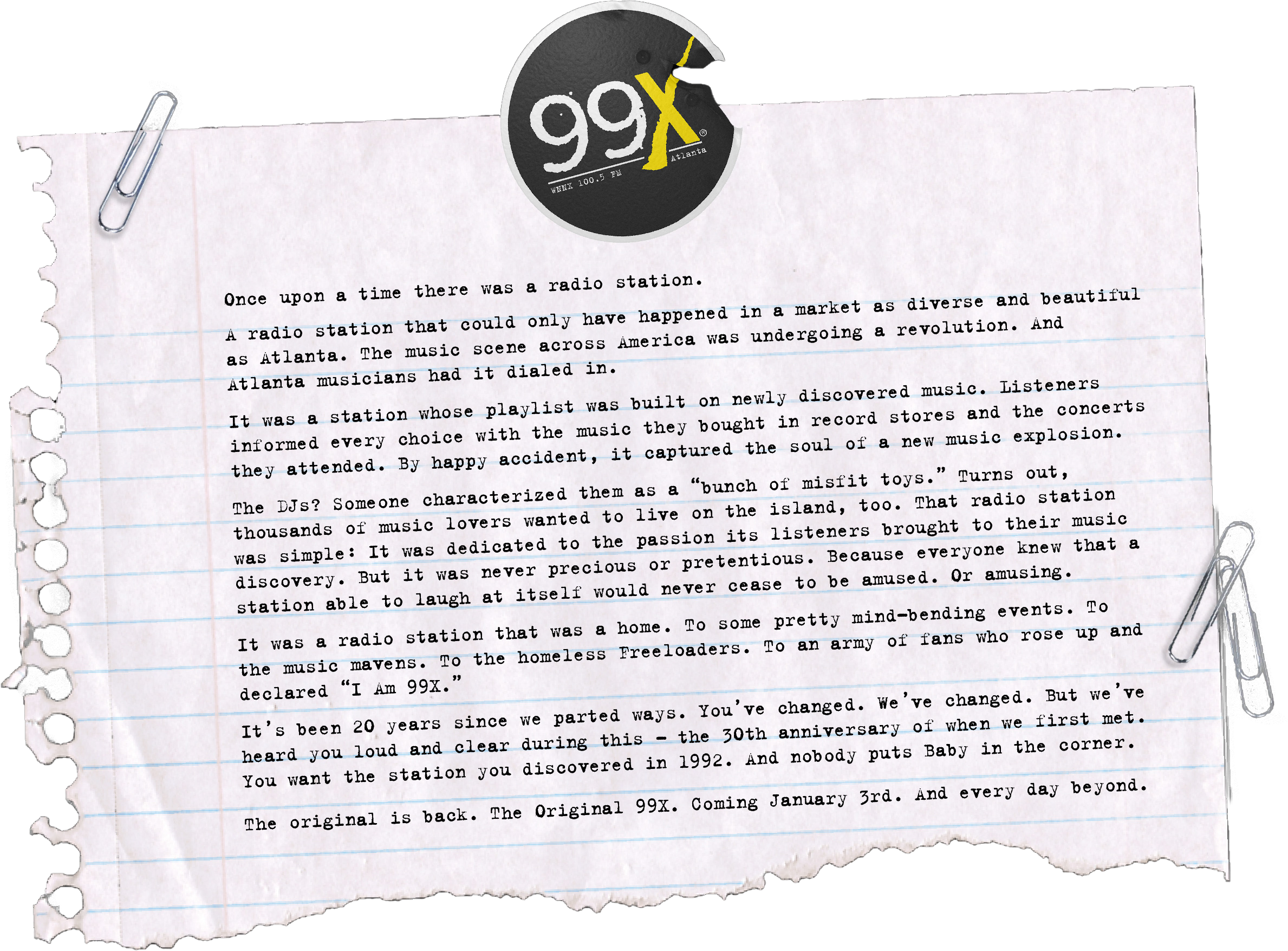 A legendary radio station in Atlanta, Georgia, 99X is known for its influence on alternative rock. Launched in 1992, it became a defining voice for the grunge movement of the 1990s and early 2000s. The station featured the iconic morning show "The Morning X with Barnes, Leslie, & Jimmy” and was instrumental in breaking major artists, including Nirvana, Pearl Jam, and Radiohead. After nearly 20 years off air, 99X replaced Rock 100.5, and I had the opportunity to participate in the relaunch efforts.